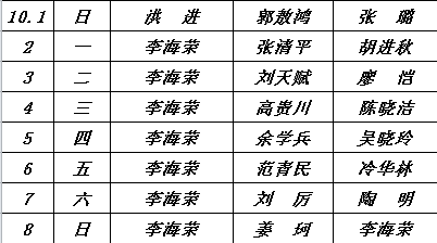 按照惯例,春节值班接国庆值班顺序。附:2017年国庆八天值班表