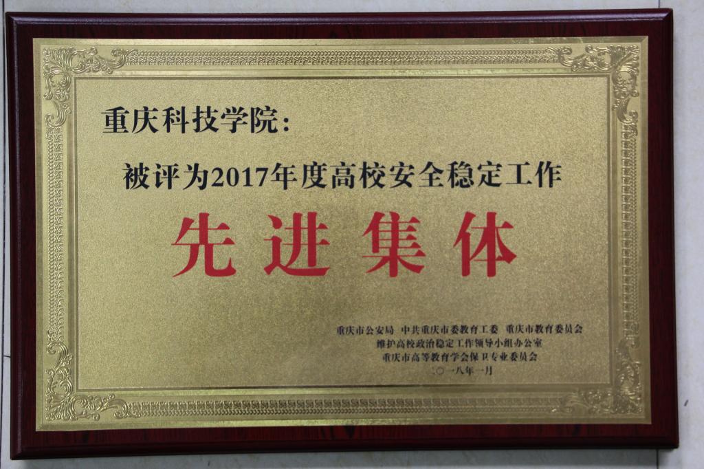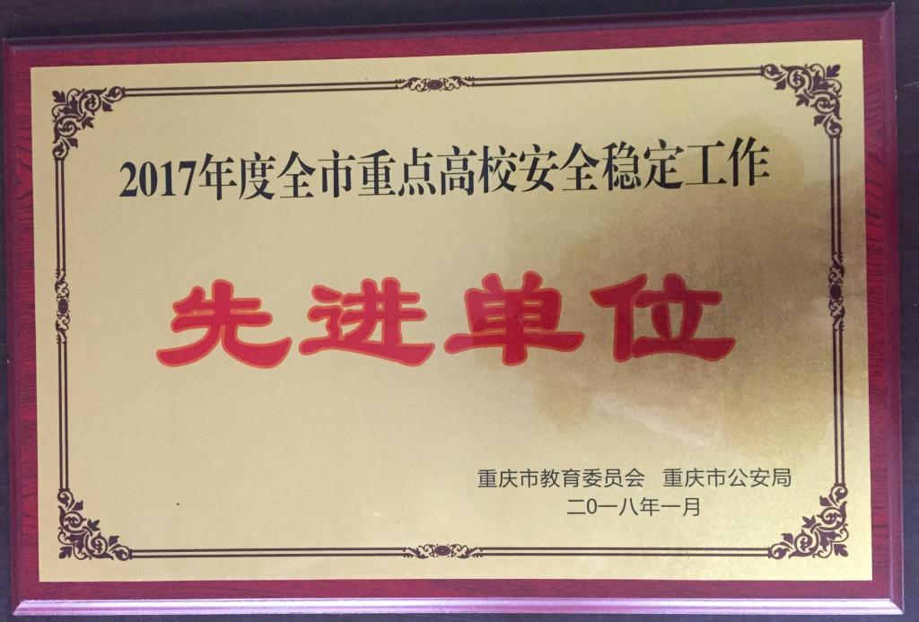 近日,市委教育工委、市教委、市公安局、重庆市高等教育学会保卫专业委员会先后召开了全市高校安全稳定工作会和2017年总结培训会,对先进集体和先进个人进行了通报表彰。我校分别荣获重庆市教育委员会、重庆市公安局联合表彰的“2017年度全市重点高校安全稳定工作先进单位”荣誉称号和重庆市维护高校政治稳定工作领导小组办公室、重庆市高等教育学会保卫专业委员会联合表彰的“2017年度高校安全稳定工作先进集体”荣誉称号,李海荣、范青民等6名同志获先进个人表彰。