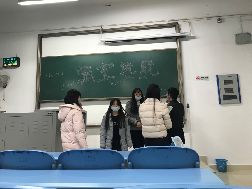 本次活动一共有4个场地,活动采取小组协作通关形式。活动内容涉及到防火知识、侦探知识、逻辑思维等方面。为了更好的烘托现场气氛,我们还制作了各种道具布置现场。参与本次活动的小伙伴们在模拟的火灾现场的密室中细心观察、寻找线索、集中智慧、团结协作,最终在繁杂的线索中找出真相,逃离火场,成功逃生!在活动现场设置了许多有关防火知识的线索、谜题,参与活动的同学各显神通,现场侦破谜题的手段精彩纷呈!